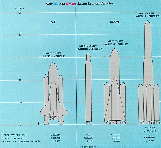 In the past ten years, the USSR has been launching more than 75 spacecraft per year, a rate of four-to-five times that of the United States. Over the past few years, the rate has been close to 100 annually. The annual payload weight placed into orbit by the Soviets is evermore impressive - 660,000 pounds - ten times that of the United States. This level of effort reflects the importance the Soviets attach to their space programs; it also reflects some technological weakness in the areas of longevity and flexibility. Soviet military and military related space programs range from extended manned missions, to meteorological, communications, navigational, reconnaissance, surveillance, targeting and antisatellite missions. The magnitude of the Soviet space program comes into even clearer focus with the realization that the USSR currently has under development a heavy-lift space launch system, comparable to the US SATURN V, that will be able to place payloads at least six.to seven times the weight of those of the US space shuttle into orbit.