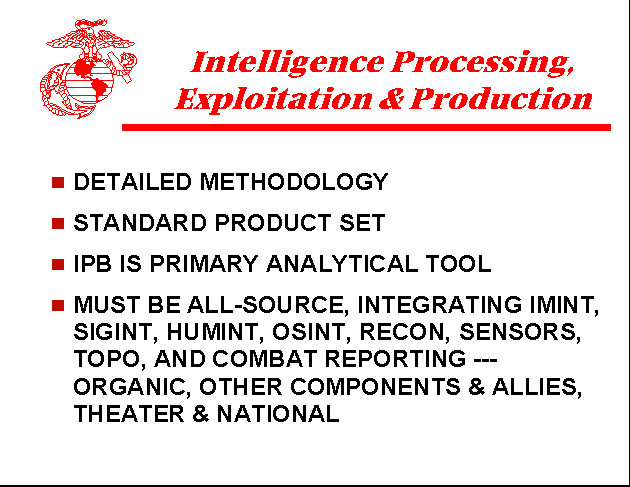 - Need to establish the "process" so we can move beyond procedures into the production of meaningful intelligence